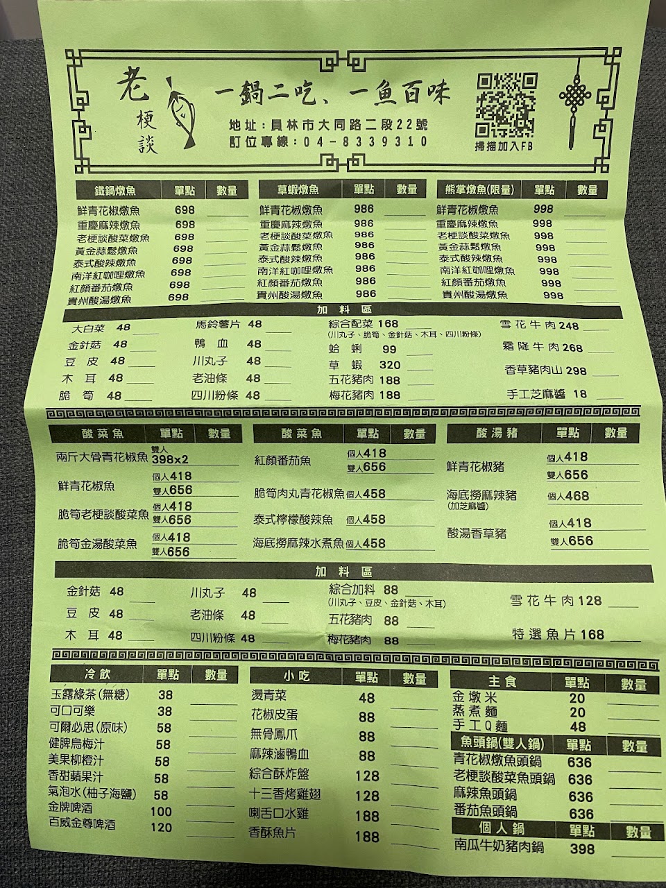 ?可改善部分: 1、特色菜一整條燉魚,我們點了四種,其中辣味的酸菜魚系列、青花椒系列,成員反應很像清水煮魚,沒有什麼味道。