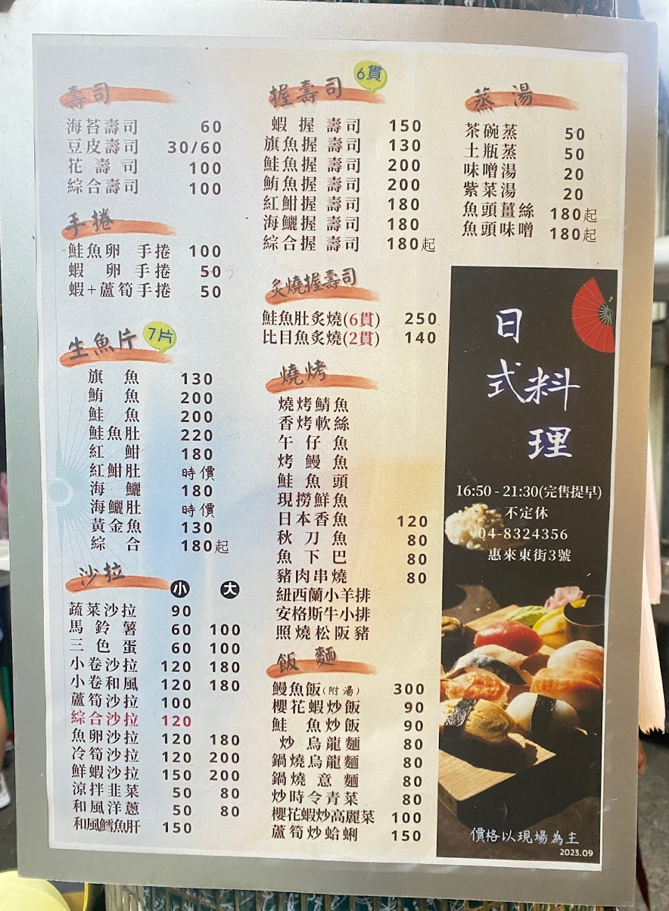 2024最新在地推薦餐廳的菜單_日式料理的菜單、圖片