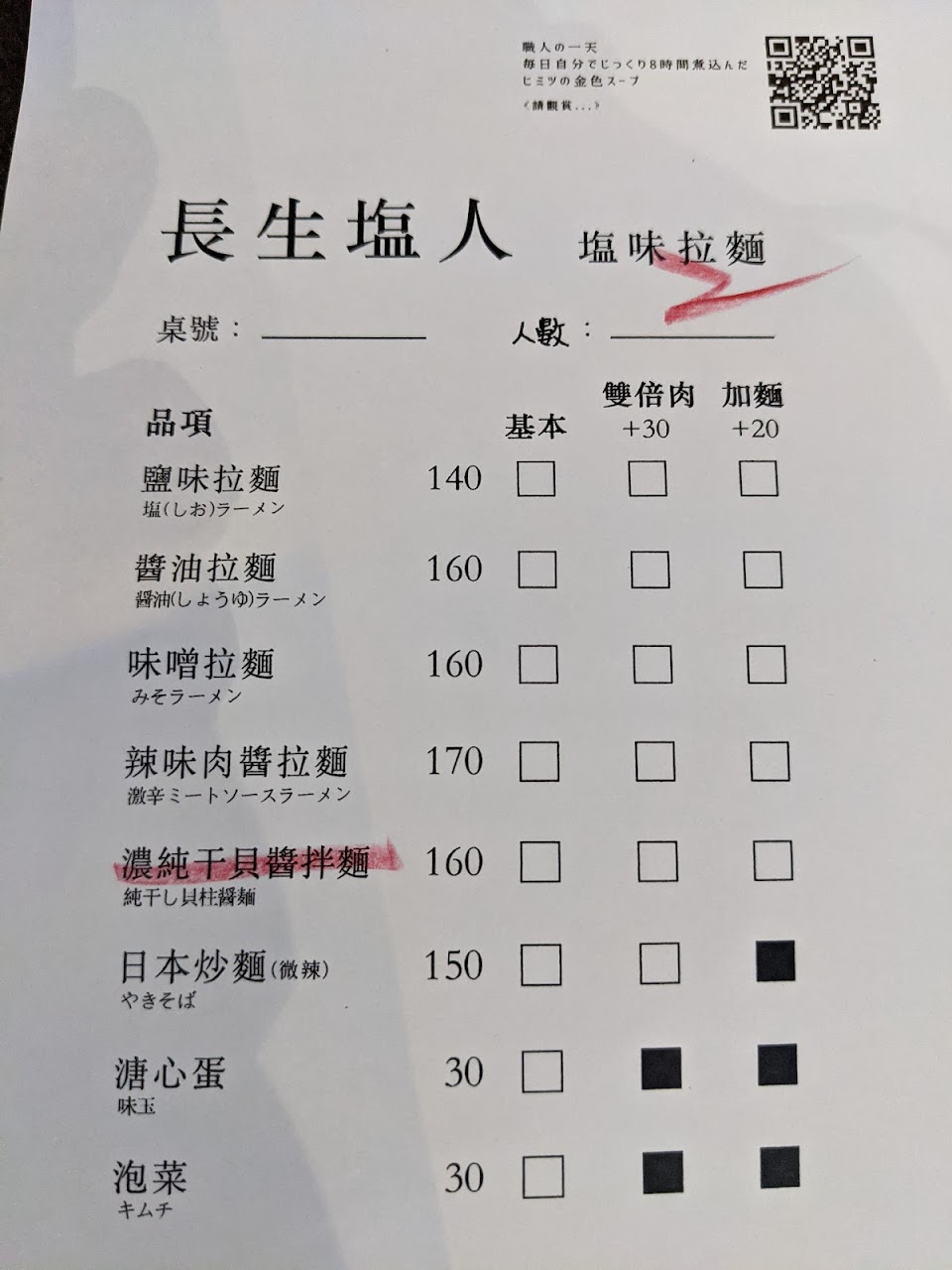 這次點鹽味拉麵