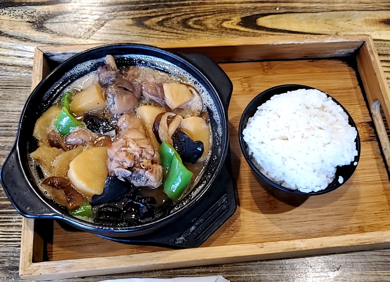 好香好吃有點辣的黃悶雞飯 吃起來超級名副其實的好吃 配料有青椒、馬鈴薯、木耳 剛好可以配一碗飯