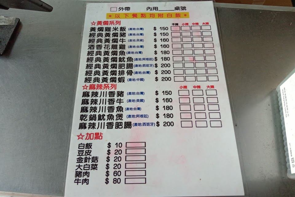 今天第一次來,下午兩點左右,點了一份兩個人吃,百元出頭黃悶雞+兩個白飯,兩人吃的飽飽,內用還有免費供應熱湯,真的是物超所值,我下次還會再來!