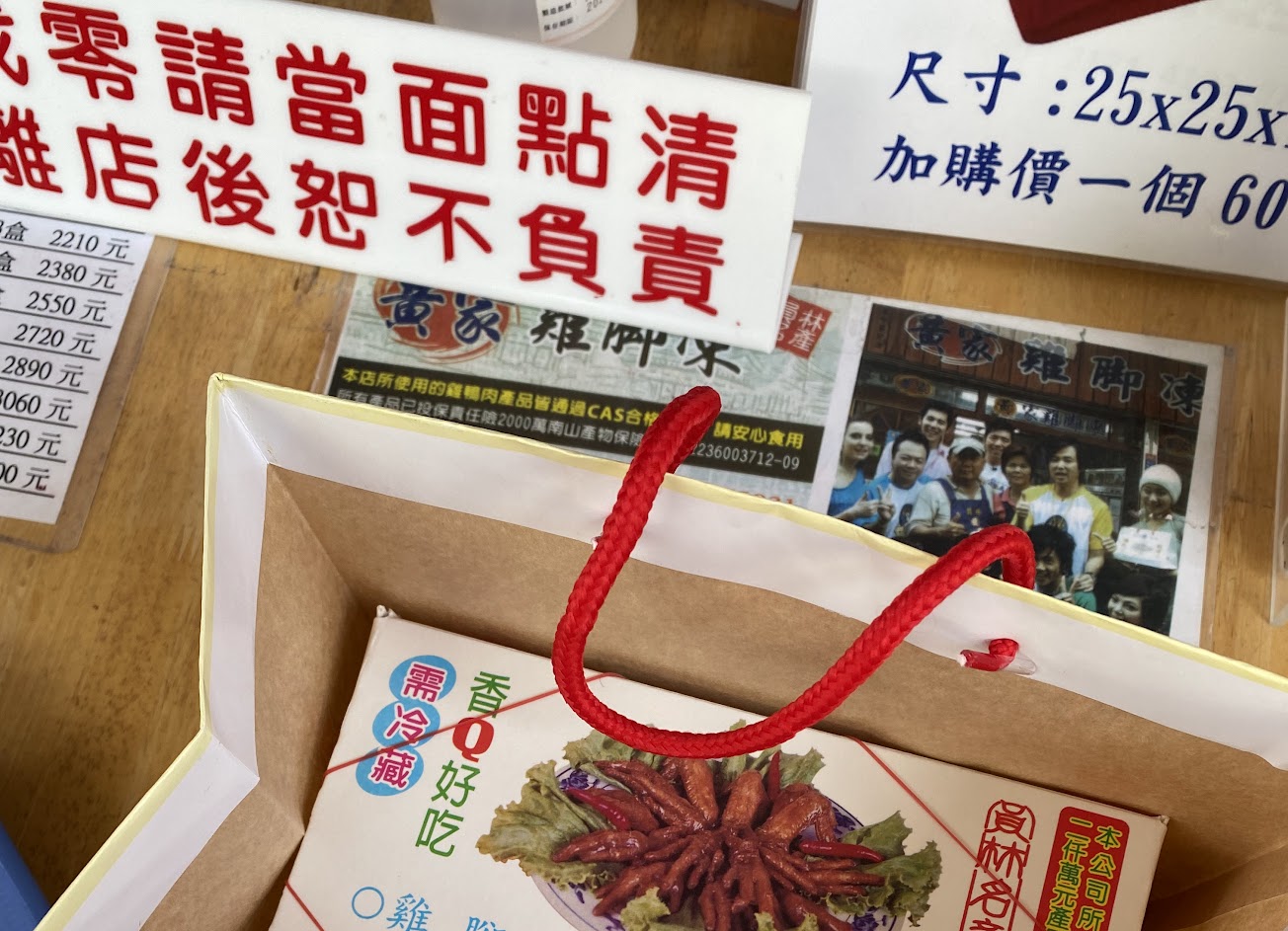 評價送的豆干還不錯吃,開車來不用擔心沒位置,外面有停車格,店門口也可以停。 平心而論,這裏的雞腳凍跟台中的雞腳凍,我比較愛台中的雞腳凍,因為台中的雞腳凍比較小之,味道上比較吃不膩,而黃家的雞腳凍也是不錯吃,可惜吃了兩塊的我就覺得差不多了。 至於雞翅跟鴨翅就看人了,我覺得普通,我家人覺得鴨翅好吃。 最後我覺得價錢有點高,170鴨翅才4之,雖然知道是秤重的,不過還是有點驚訝。