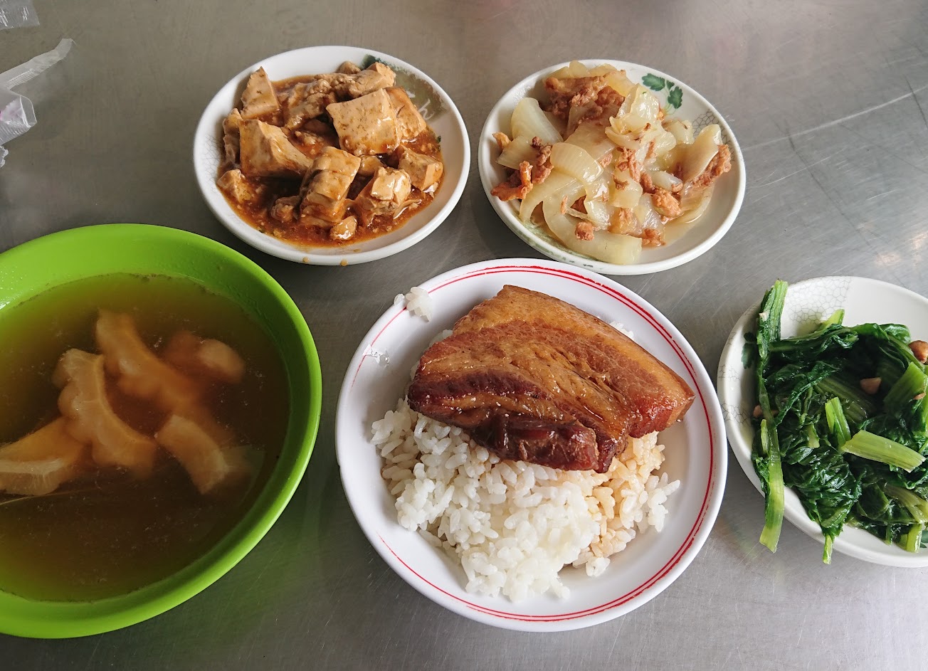 燒肉飯豬腳飯都好吃,炒洋蔥、芥菜,苦瓜湯是我的最愛,價錢還可接受。