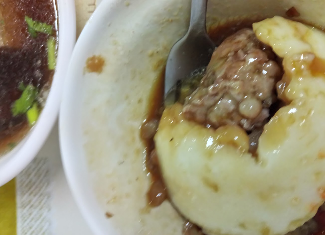 貢丸湯的湯有加醬油,吃不習慣。