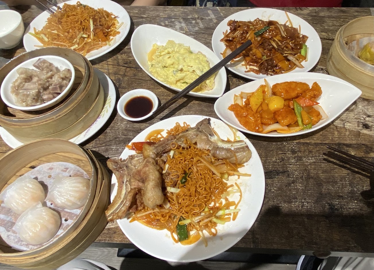 黑騎士流沙包 上 爆漿雷沙球 右 奶油多士 左 鮮蝦腐皮捲 經典廣東炒飯 水晶蝦餃 xo醬海鮮炒公仔麵 法蘭西多士 絲襪奶茶 凍檸七