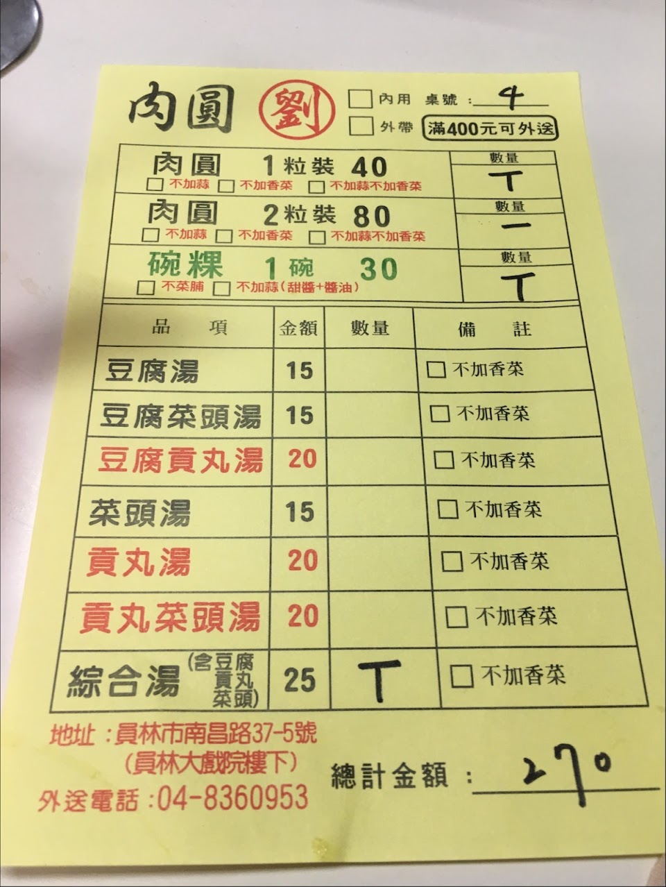 經濟實惠的選擇,位處員林市繁華街道旁,競爭小吃很多,味道是屬於會懷念的白醬肉圓,搭配甜鹹豆腐湯,讚不絕口,值得再訪!