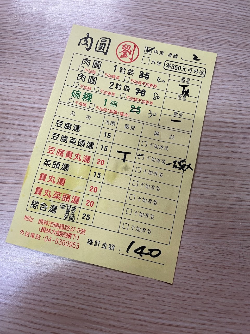 生在員林從小吃到大,朋友來到員林都必推薦,最近因物價上漲而漲價是可以理解,但用料要維持呀!幾個月前發現皮厚內餡少且鬆散,再也不是從前的劉肉圓了,感到失望。