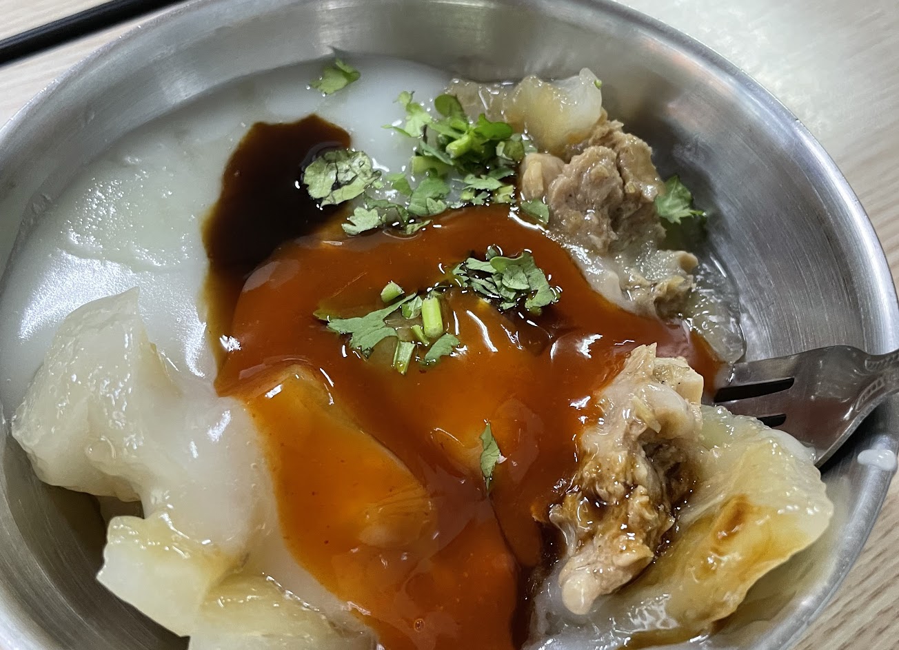 第一次聞到這麼香的肉圓,外皮軟滑爽彈,內餡大塊紮實,醬汁鹹甜適口,且一點都不油膩,值得推薦。