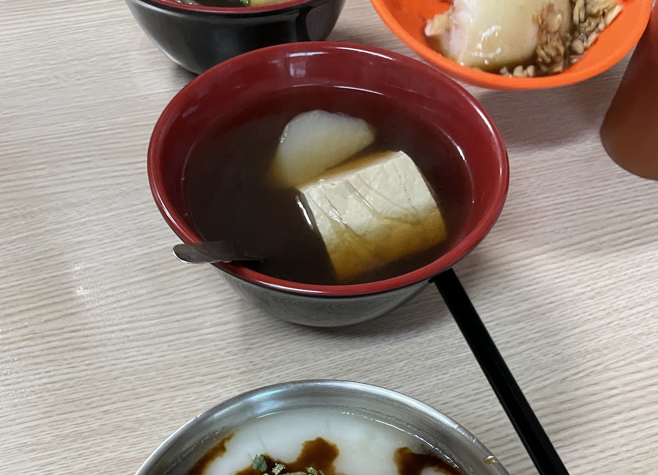 整體CP高,肉圓醬非常正統,配著炸過的肉圓,非常好吃。菜頭豆腐湯很特別,湯底為醬油加大骨湯,呈現深色湯好喝順口,豆腐紮實,價格非常實惠。