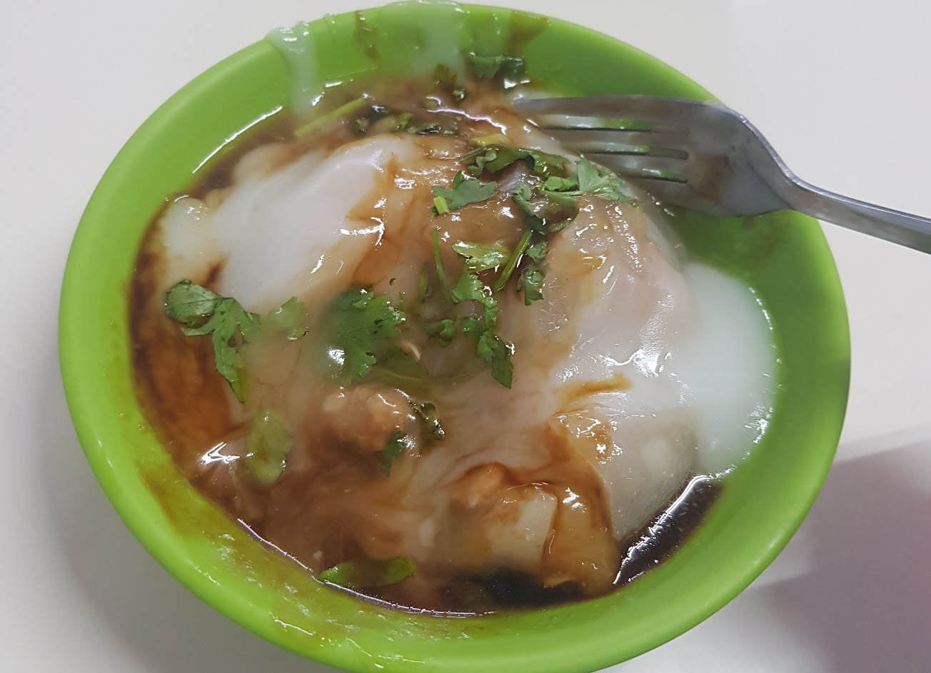 湯有加醬油,喝起來很像在喝滷汁,我一口都沒喝,碗粿是好吃的,但是醬油非常鹹,因此給兩顆星? …