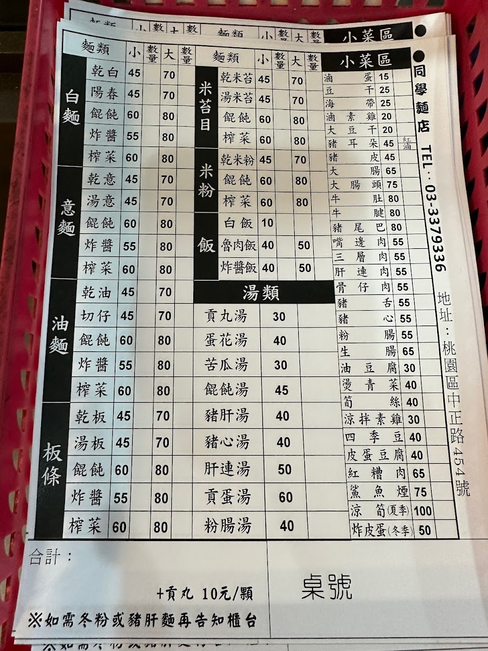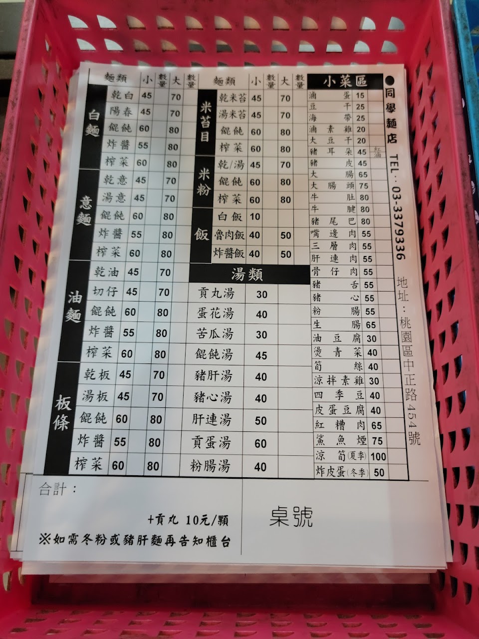 2024最新在地推薦餐廳的菜單_同學麵店的菜單、圖片