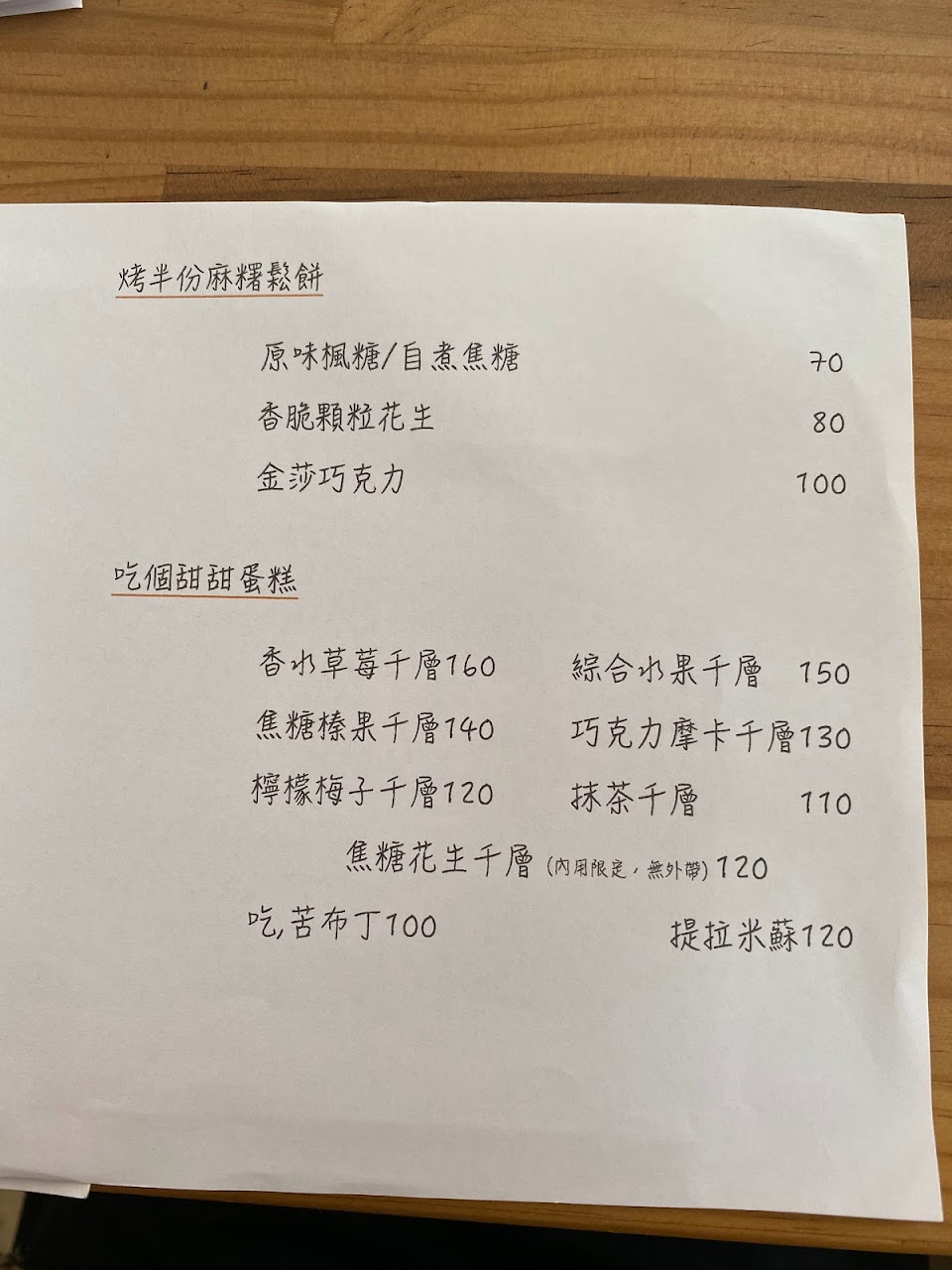 「焦糖花生千層」:只能推爆了,menu說不能外帶只能內用,夾層有花生醬和花生顆粒,平常不太愛花生顆粒的我覺得非常可以,重點不甜膩!