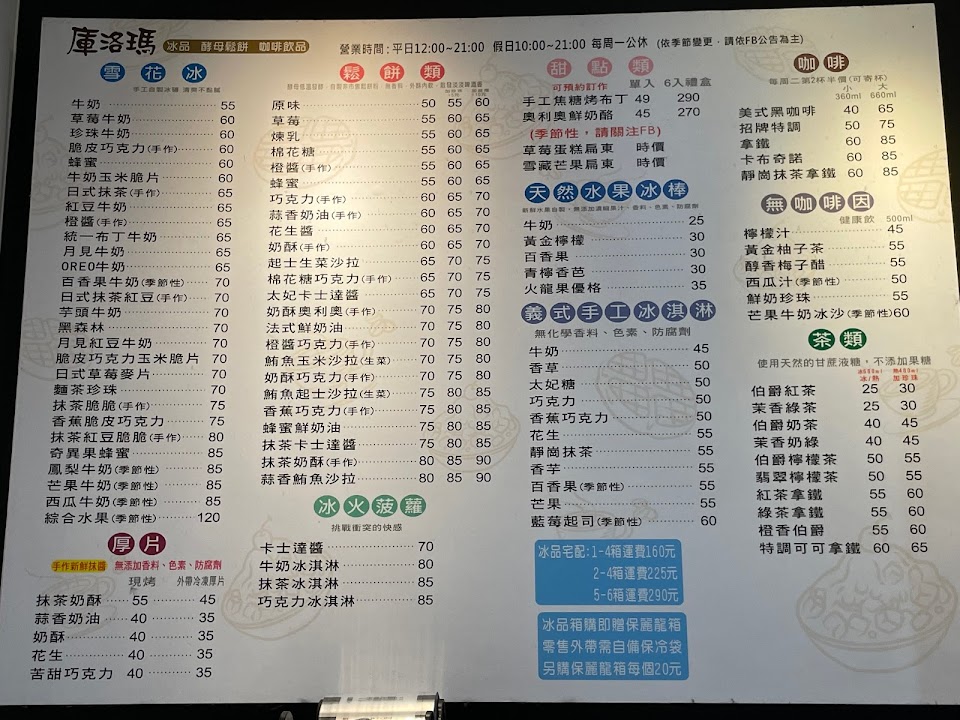2024最新在地推薦餐廳的菜單_庫洛瑪_手工冰品、酵母鬆餅的菜單、圖片