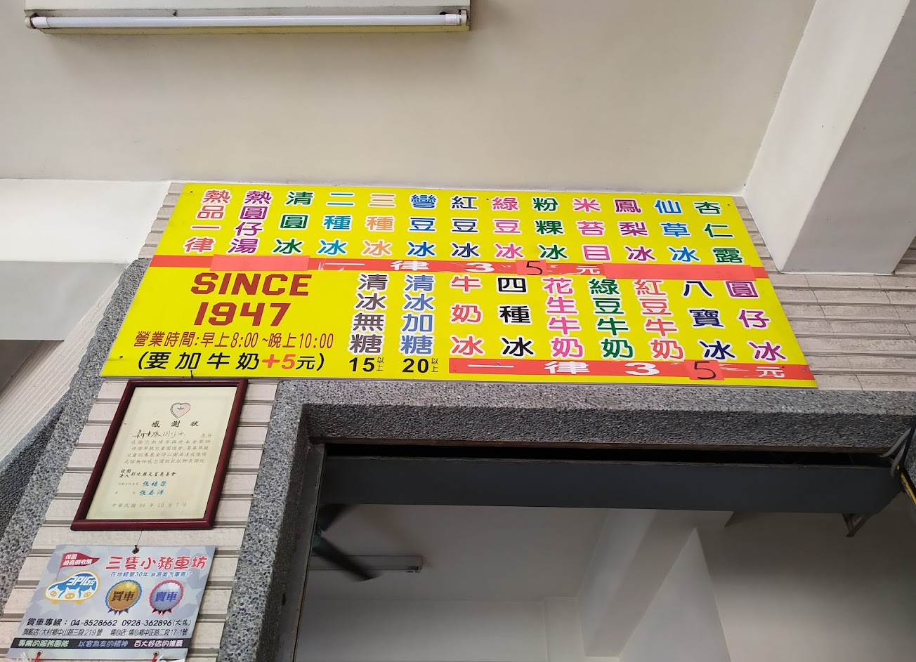 真的很古早味的冰品店,點了花生牛奶跟粉粿冰,都是35元的。清冰的滋味很好有很大碗,跟現在都市那種吃起來奶味很重的綿綿冰不一樣,就是很清爽的滋味。我本來以為花生是煮軟的那種,結果是炒過的這種硬硬的花生,本來想說會不會不好咬,意味發現炒過的花生搭配帶有些微蜂蜜味道的奶汁清冰很搭,慢慢吃泡一下花生也會軟一點點,很好吃? 粉粿冰由於不是我吃的⋯可以參考一下外觀,看起來也是很不錯,料超多,碗超大?粿都在下面要挖起來才看到~ 熱品的部分只有紅豆湯跟圓仔湯,比較少,有點可惜。 …