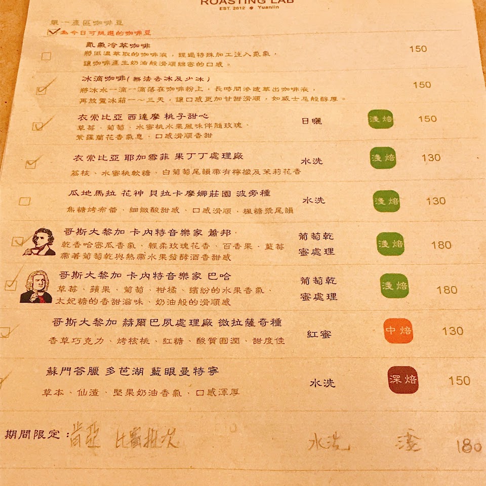 ▪️手沖咖啡大多是中淺焙,整體選項不多,適合有選擇障礙的人,單杯價格在130-180元,價格合理,也有提供燕麥奶給蔬食者