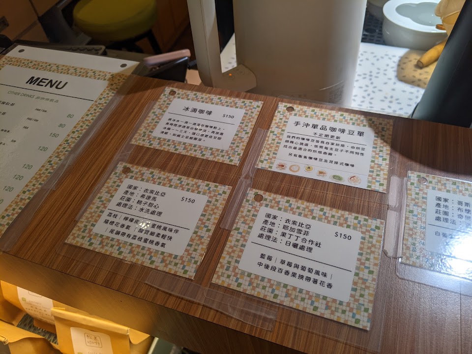 這家店店面的咖啡種類有很多種類可供選擇, 算一算很不錯,幾乎都是清一色手沖咖啡,不過單價偏高一點點,這點就要見仁見智了。