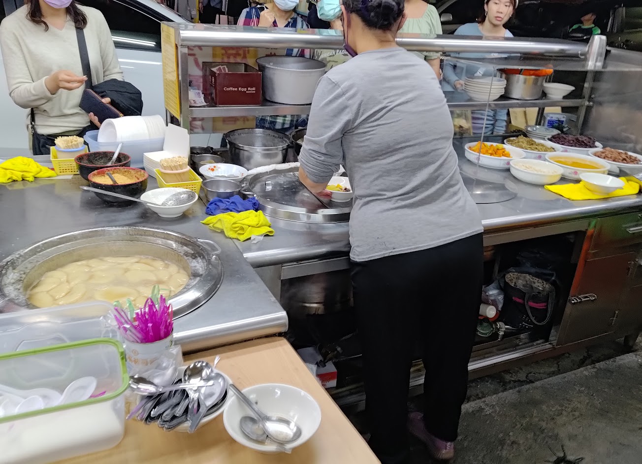 燒麻糬,花生芝麻綜合口味,八寶冰內含八寶,飲料可另點無糖,排隊人多。