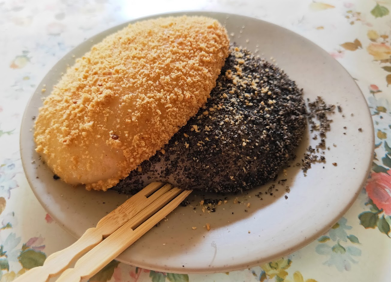 燒麻糬軟Q好吃,有花生和黑芝麻。
