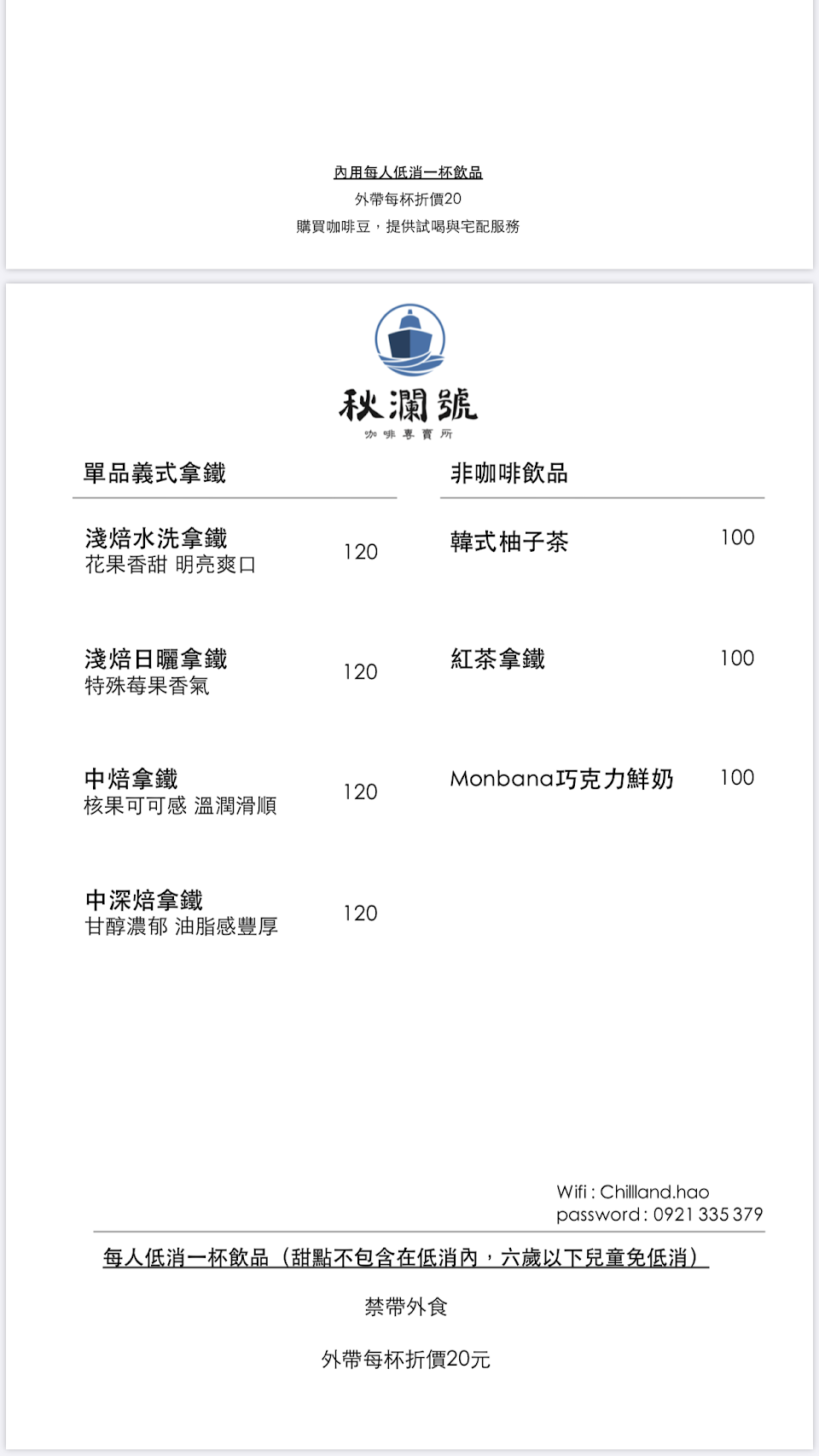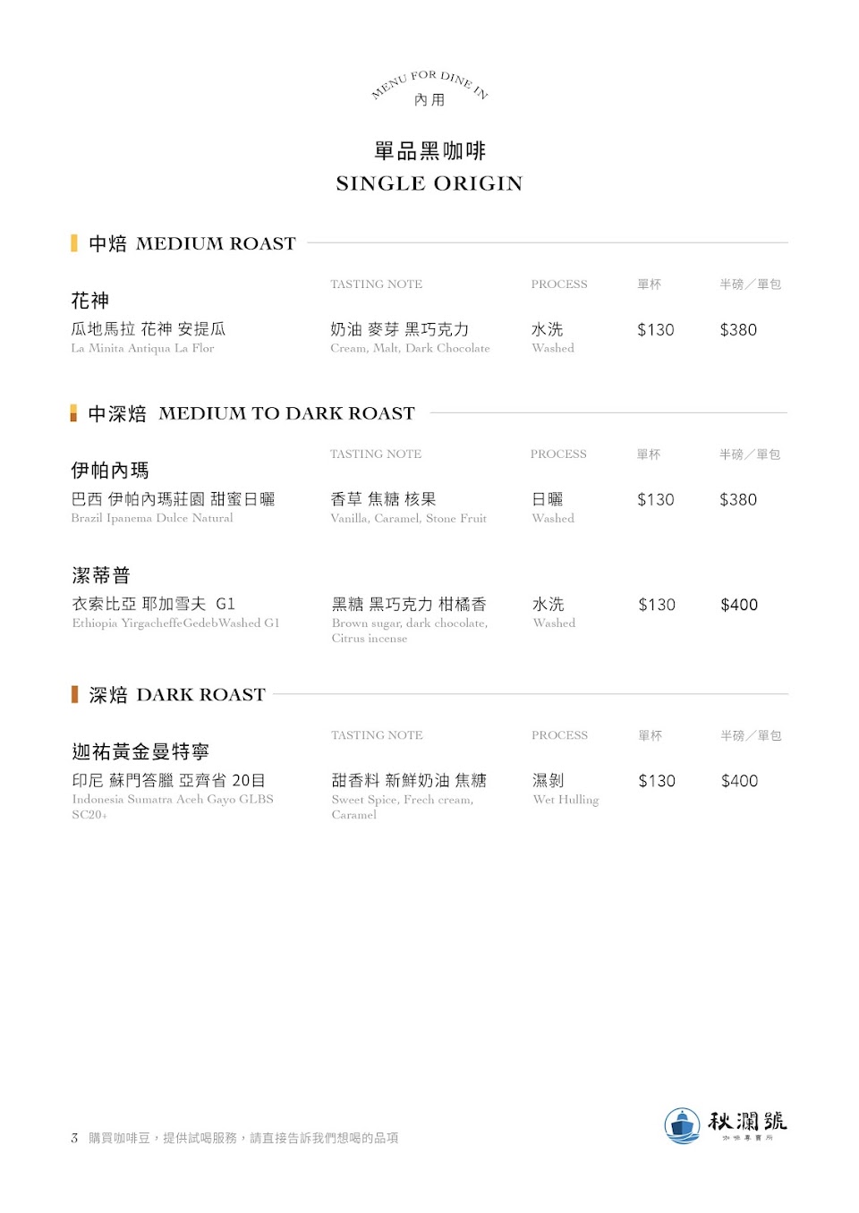 2024最新在地推薦餐廳的菜單_秋瀾號 咖啡專賣所的菜單、圖片