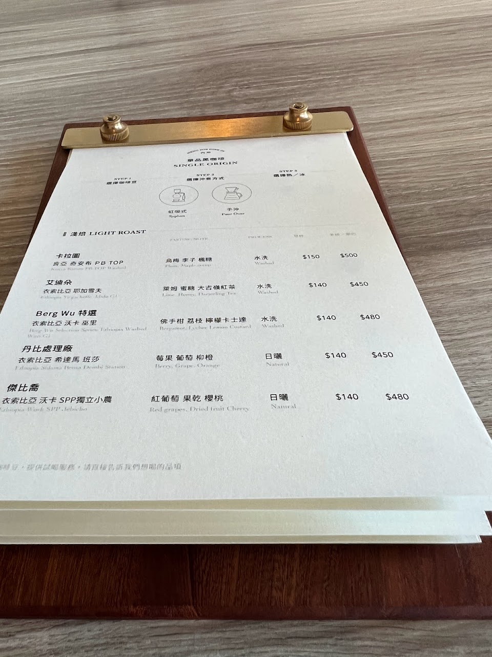 終於在這裡喝到看很久的Key跟PK100磨豆機?謝謝店員一口答應可以用Key出手沖,希望沒有造成困擾。單品有手沖跟虹吸可以選,義式有三種焙度,對各種沖煮都很熟悉的店家才能這樣開菜單吧!下次來員林還想來拜訪?