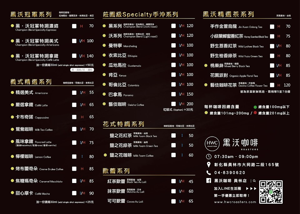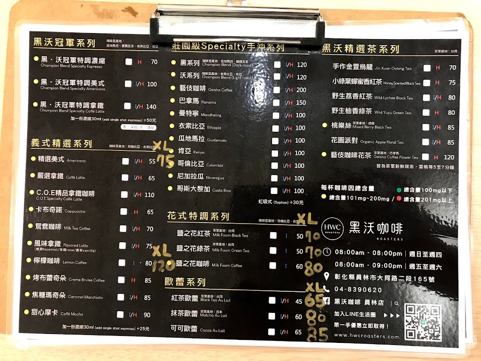 2024最新在地推薦餐廳的菜單_HWC黑沃咖啡-彰化員林店的菜單、圖片