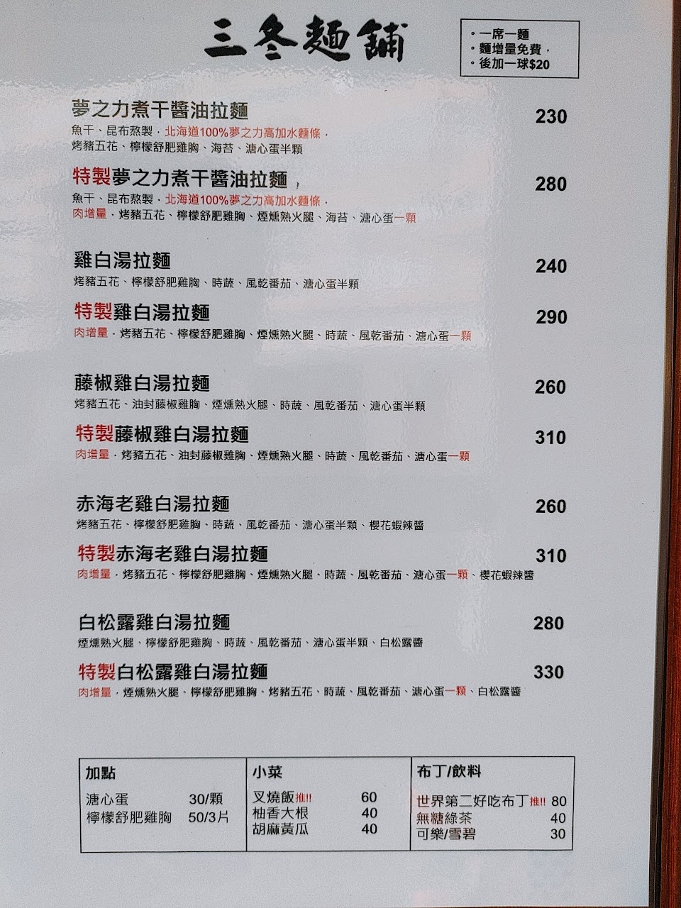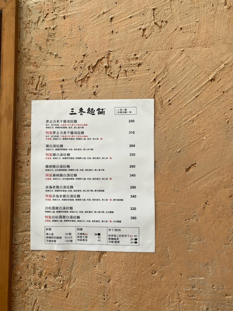 2024最新在地推薦餐廳的菜單_三冬麵舖的菜單、圖片