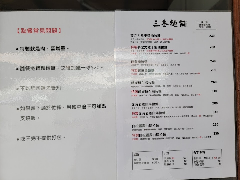 ?在桃園很有名的排隊名店三冬拉麵,我不太愛吃拉麵,這也是我難得為了拉麵排隊,來試試傳說中的雞白湯拉麵究竟有多厲害?