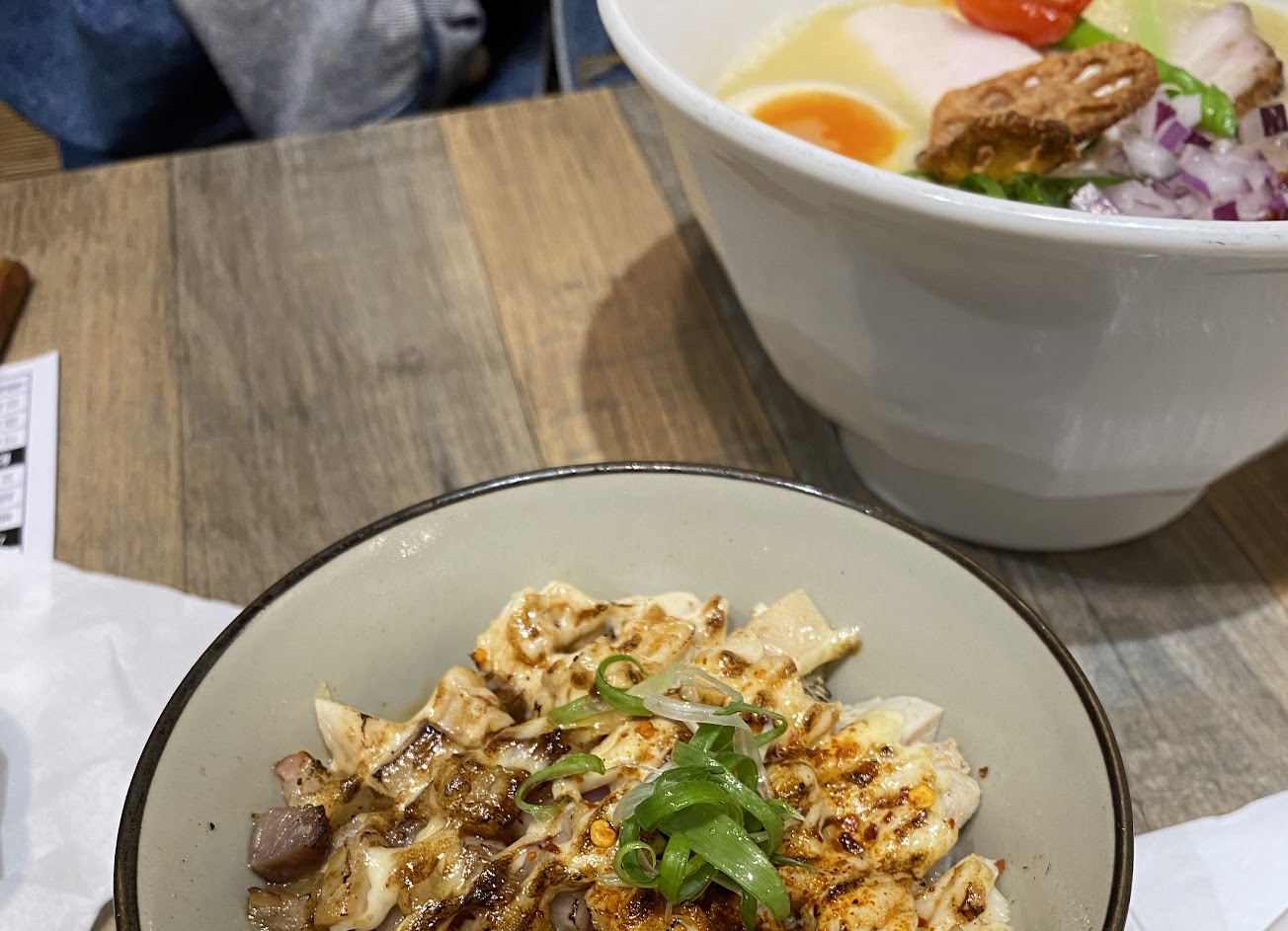 ? 三冬雞濃厚拉麵 湯頭濃郁不膩,叉燒加上舒肥雞肉恰到好處,麵體偏軟(有跟店家說要麵硬還是覺得偏軟),特別的地方是裡面有炸蓮藕和番茄,不是很搭但整體來說好吃