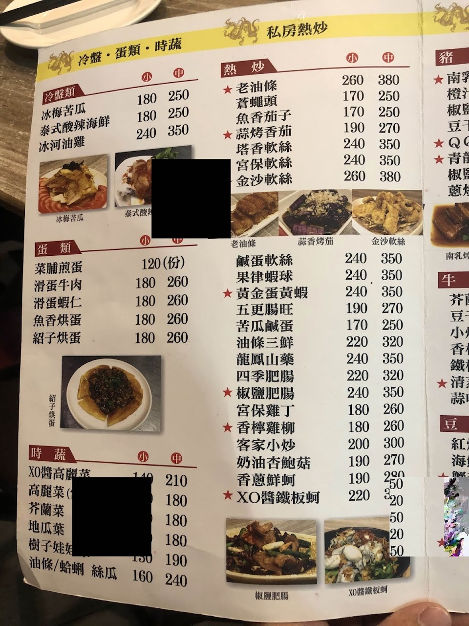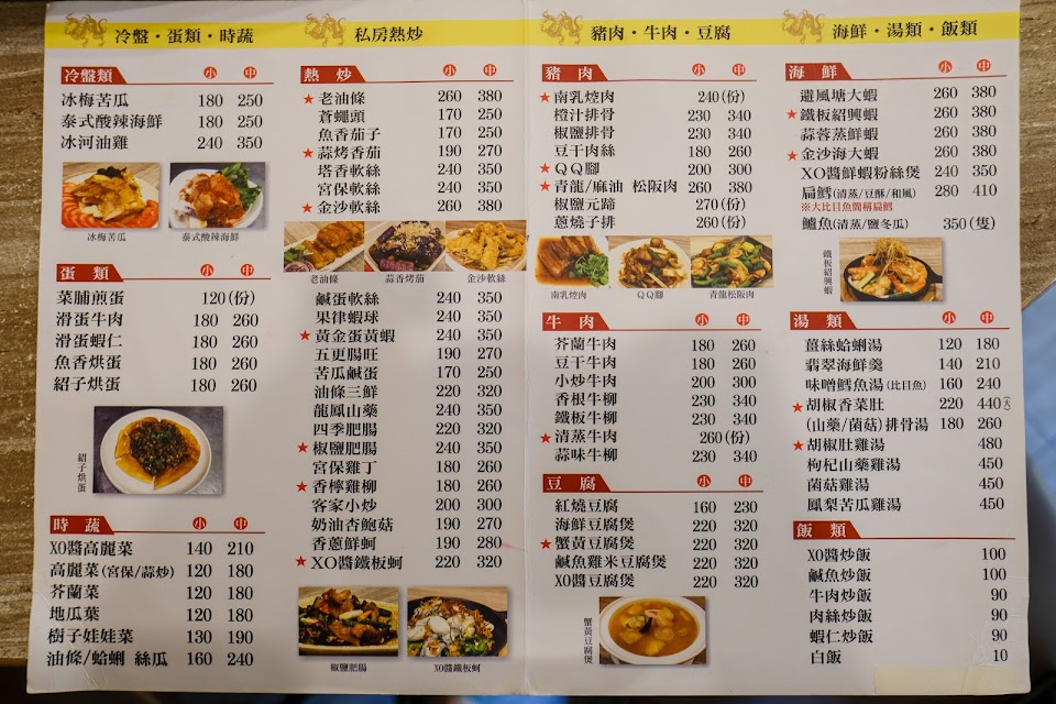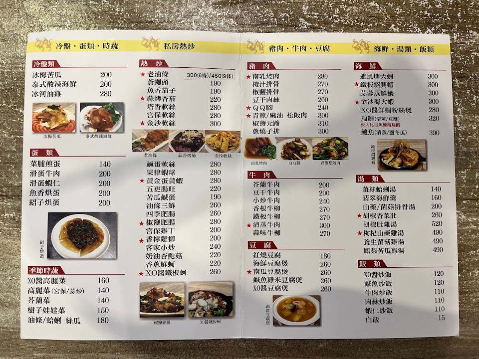 蝦仁炒蛋 xo醬鐵板蚵 招牌老油條 青龍松阪肉
