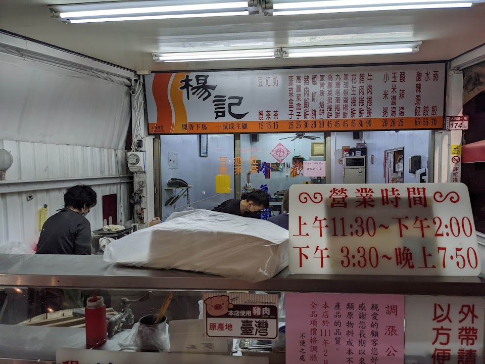 其實楊記很不錯,蔥抓餅,捲餅都很好吃。只是禮拜天常常休息,有一陣子還以為他們不開了。後來才知道平常都正常營業。