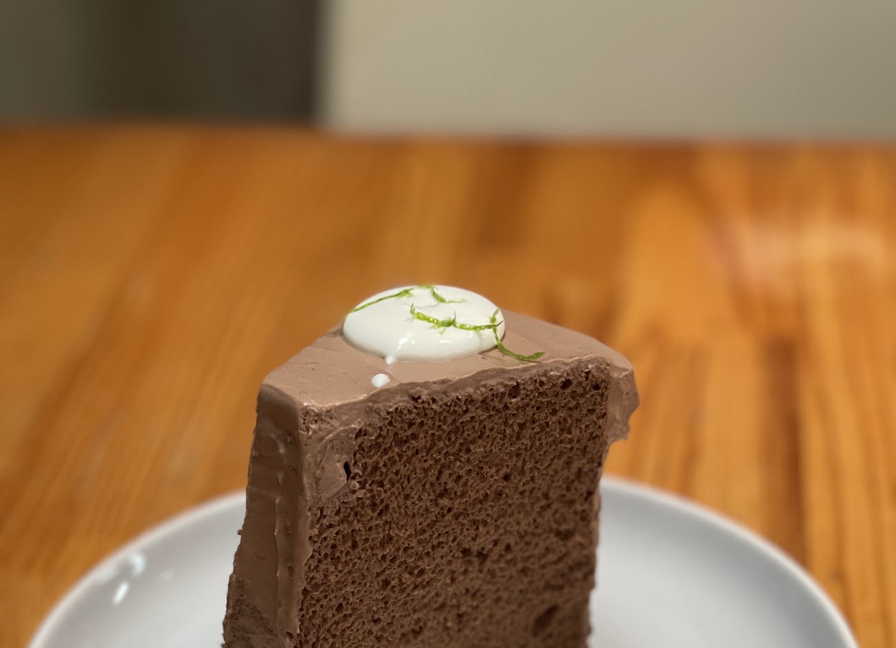 拾米屋巧克力飲是用產區可可豆製作的,不是一般坊間的便宜可可粉,香氣層次非常細膩豐富,尾韻帶一點天然的酒香,無糖更顯風味本質。古典巧克力蛋糕搭配動物性鮮奶油和青檸檬皮,吃一口沾著青檸檬皮鮮奶油的蛋糕,和巧克力飲一起在口中綻放,青檸檬皮的精油香和巧克力很搭。