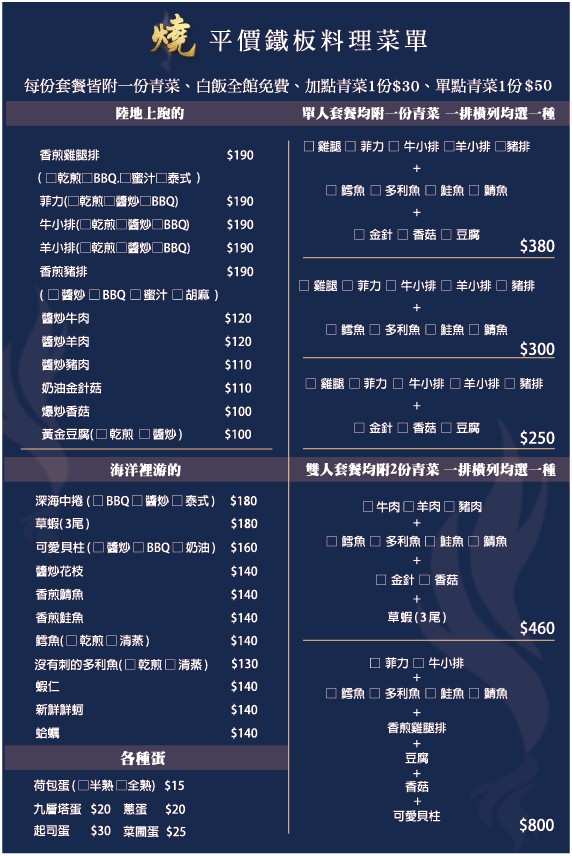 2024最新在地推薦餐廳的菜單_燒。平價鐵板料理-員林平價鐵板燒|在地推薦|必吃美食的菜單、圖片