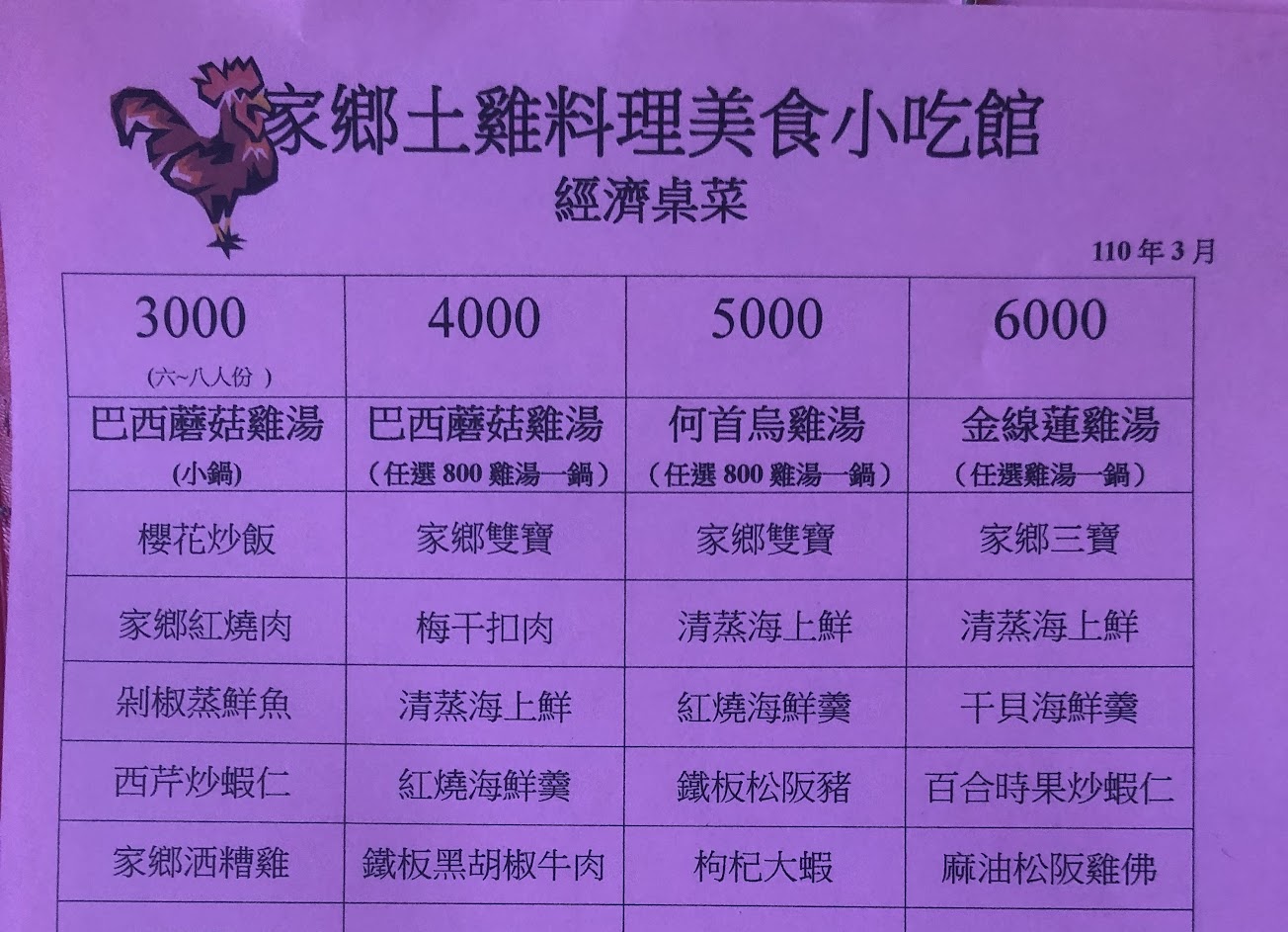 2024最新在地推薦餐廳的菜單_家鄉土雞料理的菜單、圖片