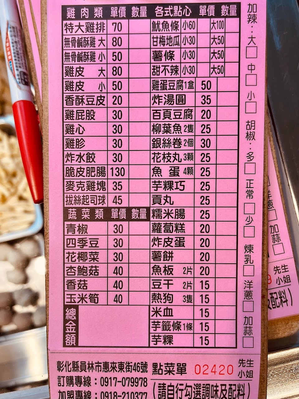 員林新開的店家~推推唷 店家整體上乾淨明亮 炸物推薦脆皮肥腸、雞屁股、雞皮跟百頁豆腐還有最經典的鹹酥雞! 雞皮炸得超酥的不像其他間有些都炸的軟軟的(冷掉也是超酥的),不曉得是不是因為老闆可能有用甩油的所以吃起來特別清爽~ 隔壁水果攤,拔辣超級好吃? 老闆幽默又風趣??? 是會回購的店家