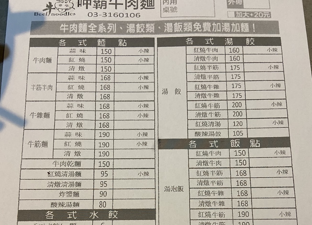 這次簡單推薦桃園CP值高的牛肉麵店,若不點小菜的話,100多塊就能吃到飽,不只可以加湯加麵,還有豆花飲料可以喝,雖然不是創始店(新豐的什麼店)但開在桃園藝文特區來說,算是蠻有競爭力的平價牛肉麵店,大家可以來試試看!