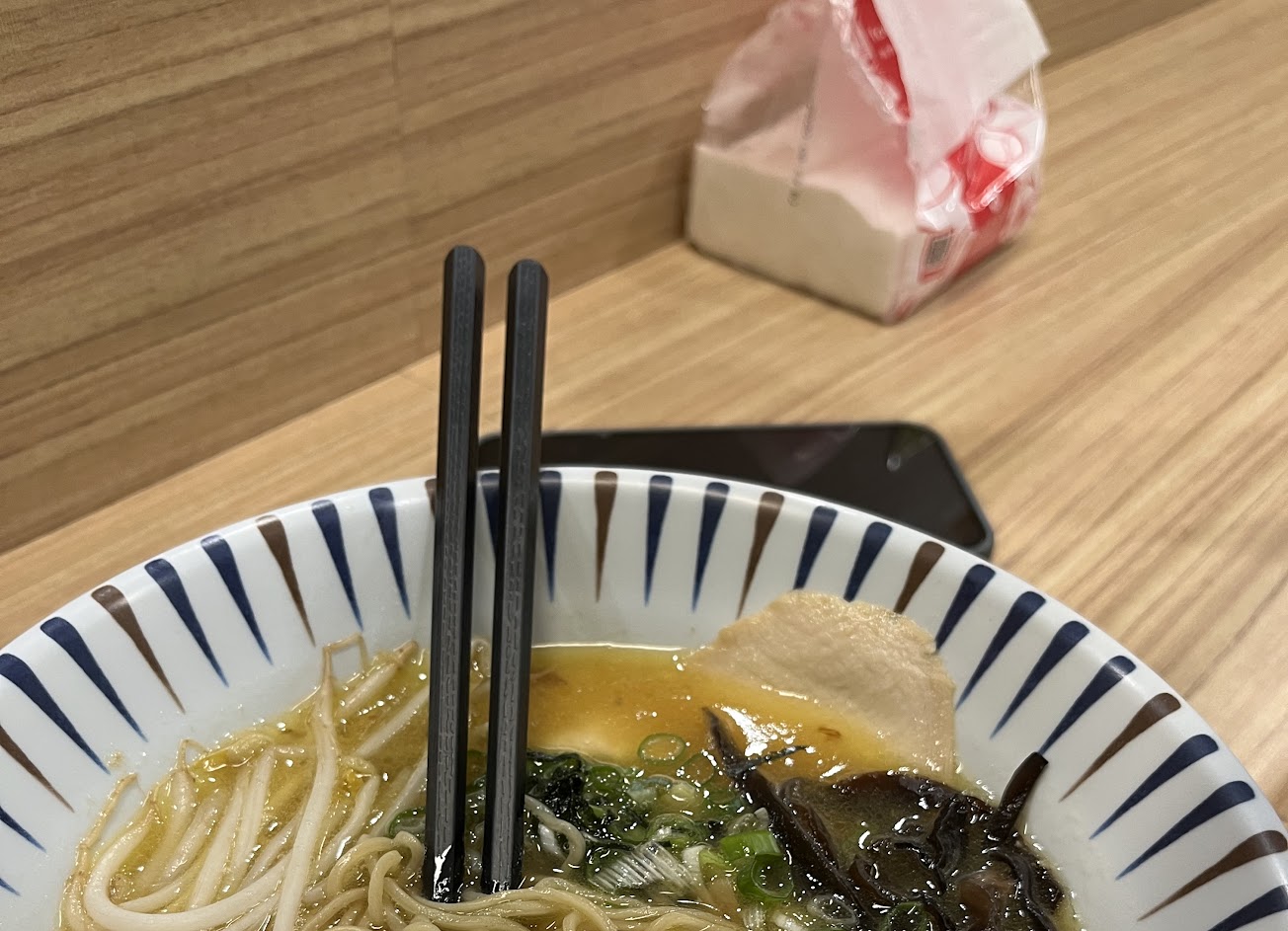 湯頭味道很濃,點了 鹽味+70元豪華版,麵條硬度適中,環境乾淨舒適,適合深夜來點宵夜