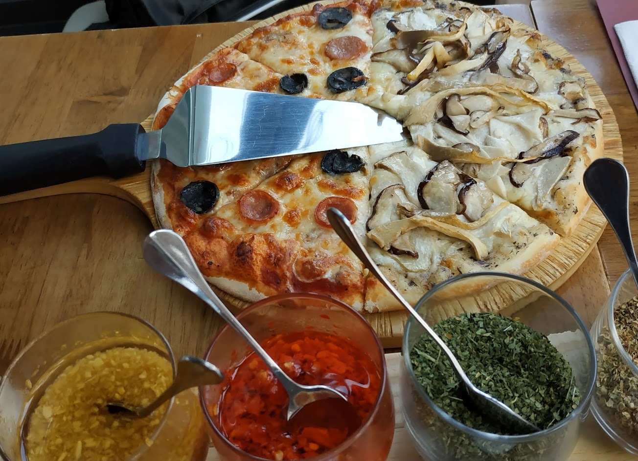 披薩非常的好吃,比連鎖店的披薩或是Pizza rock/Pizza factory等等…還要好吃!別小看這間。厲害在披薩上面的料,自己去吃才知道。大加分。份量也算cp很高,我個人覺得很便宜,不小氣。