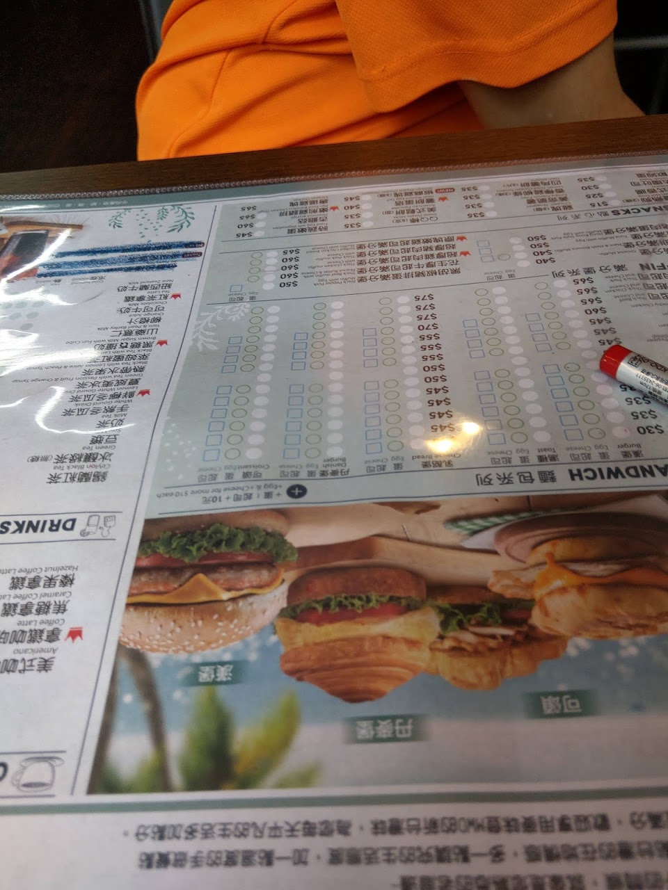 點餐的塑膠墊很難畫上去,送餐店員的反應有點遲鈍,送餐的感覺也不太好,有點像是丟在桌上。不時還可以看到對著客人指指點點。胡椒粉放很重,如果還有下次,一定要提醒自己記得請店家不要放胡椒粉。