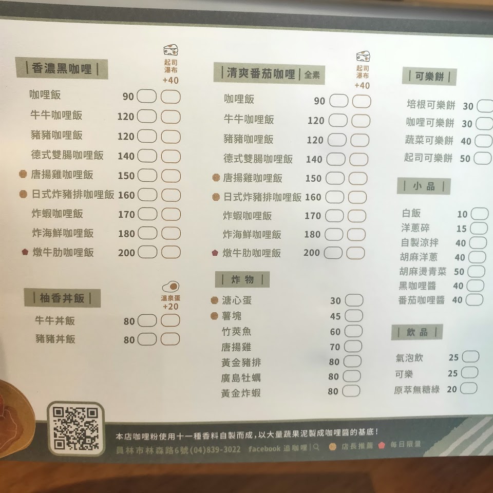 2024最新在地推薦餐廳的菜單_追咖喱/員林美食/餐廳/定食/日本料理的菜單、圖片