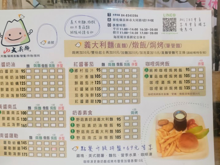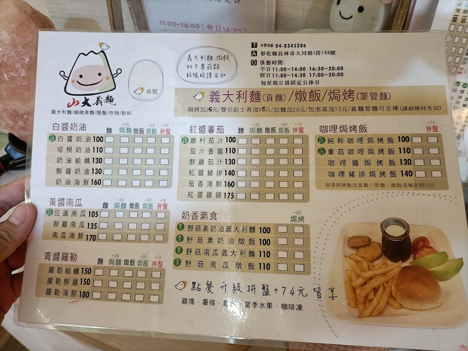 2024最新在地推薦餐廳的菜單_員林山大義大利麵的菜單、圖片