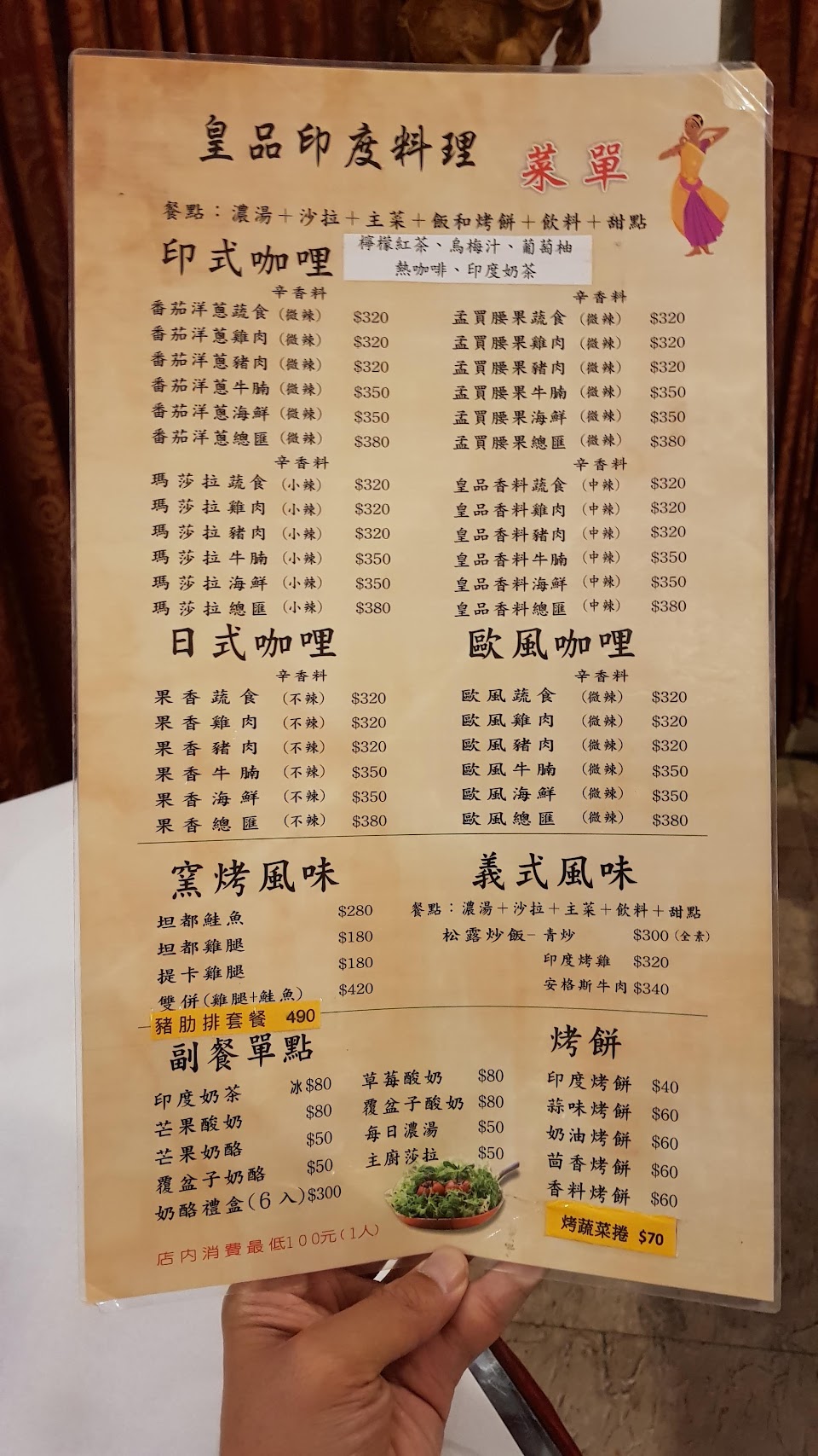 2024最新在地推薦餐廳的菜單_皇品印度料理的菜單、圖片