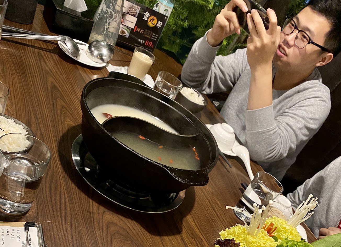 湯頭特別,桌子可以再大一點,不然食材太多沒地方放,六人桌只有兩個爐,這樣2+2+2套餐還要在開一桌有點不方便