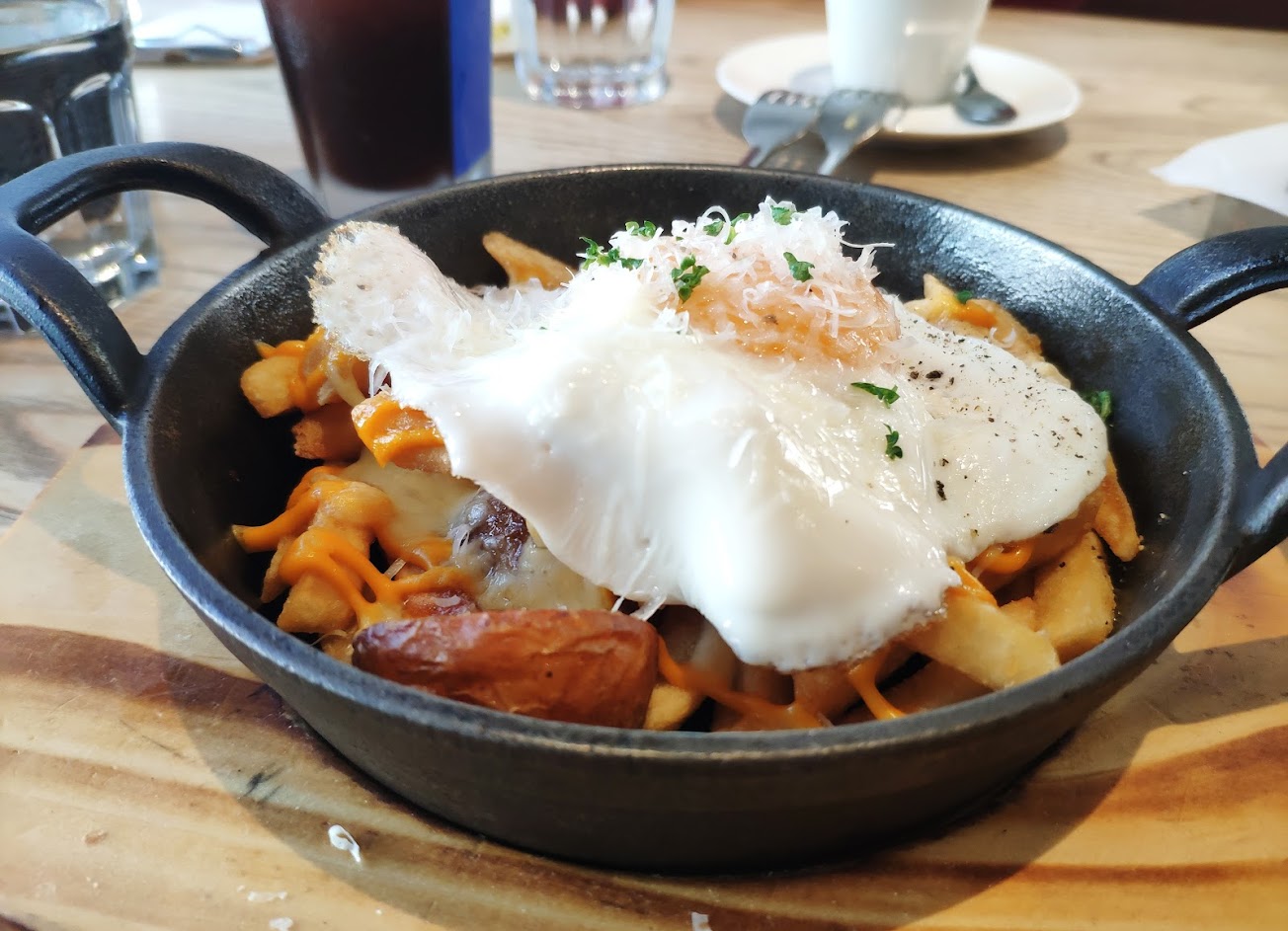 四人(兩男兩女)點了三人套餐,店員表示沒人皆有分開計算之低消,故又點了一份先刨起司黑松露薯條,份量有些大吃得很撐,餐點太多,雖然上餐速度沒有到非常快,但有一些小餐點想留著慢慢吃,卻礙於桌面不大,只好請店員收走,有點可惜浪費了一些食物。