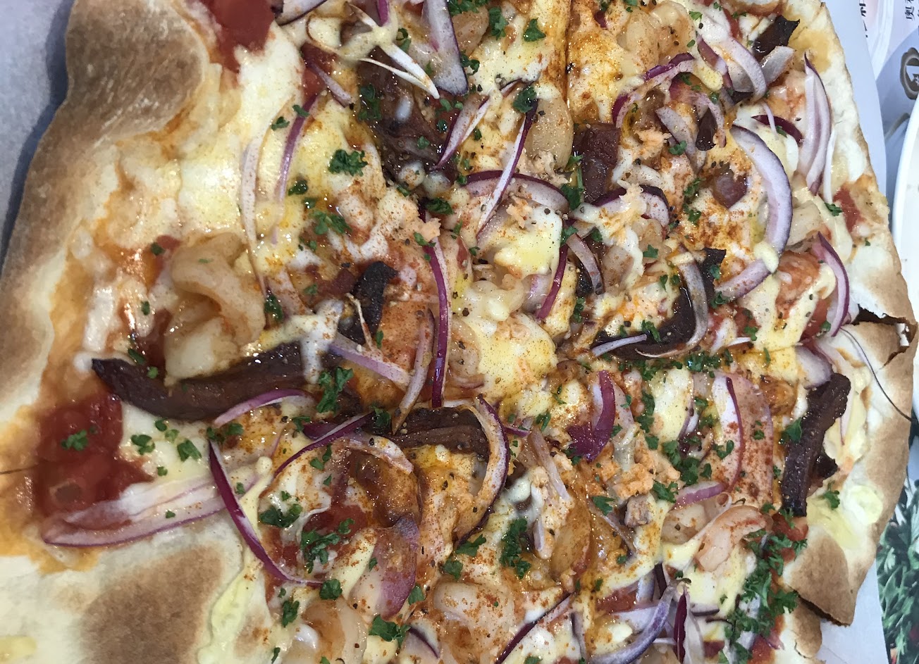 披薩薄皮的 餡料大方香氣夠