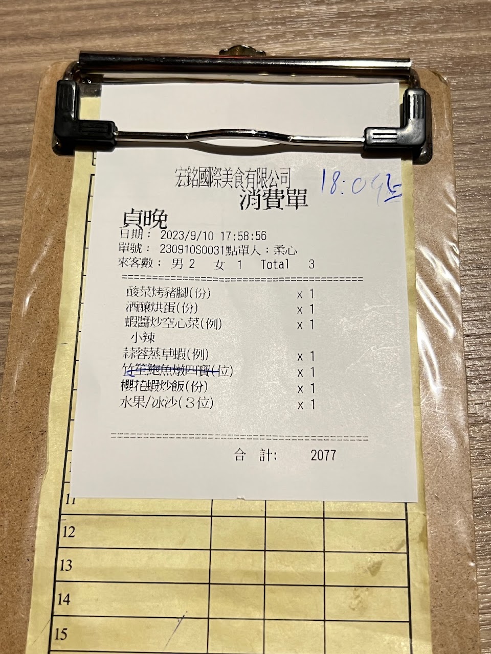 餐點:1