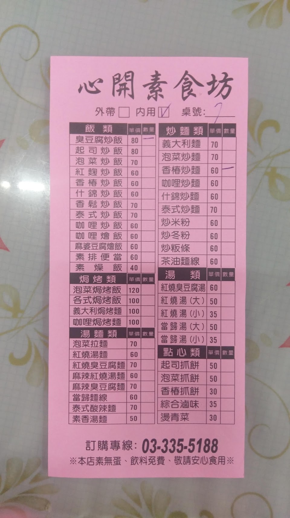 之前吃過泰式炒麵和炒粄條及當歸湯(小)好好吃喔!菜單上的每一樣都想吃,今天來吃素食便當60元和當歸湯(小)35元,每次都點不一樣的,要把菜單上的餐點全部吃遍^0^