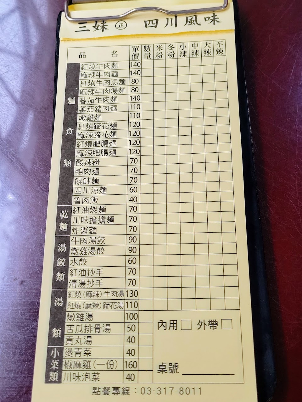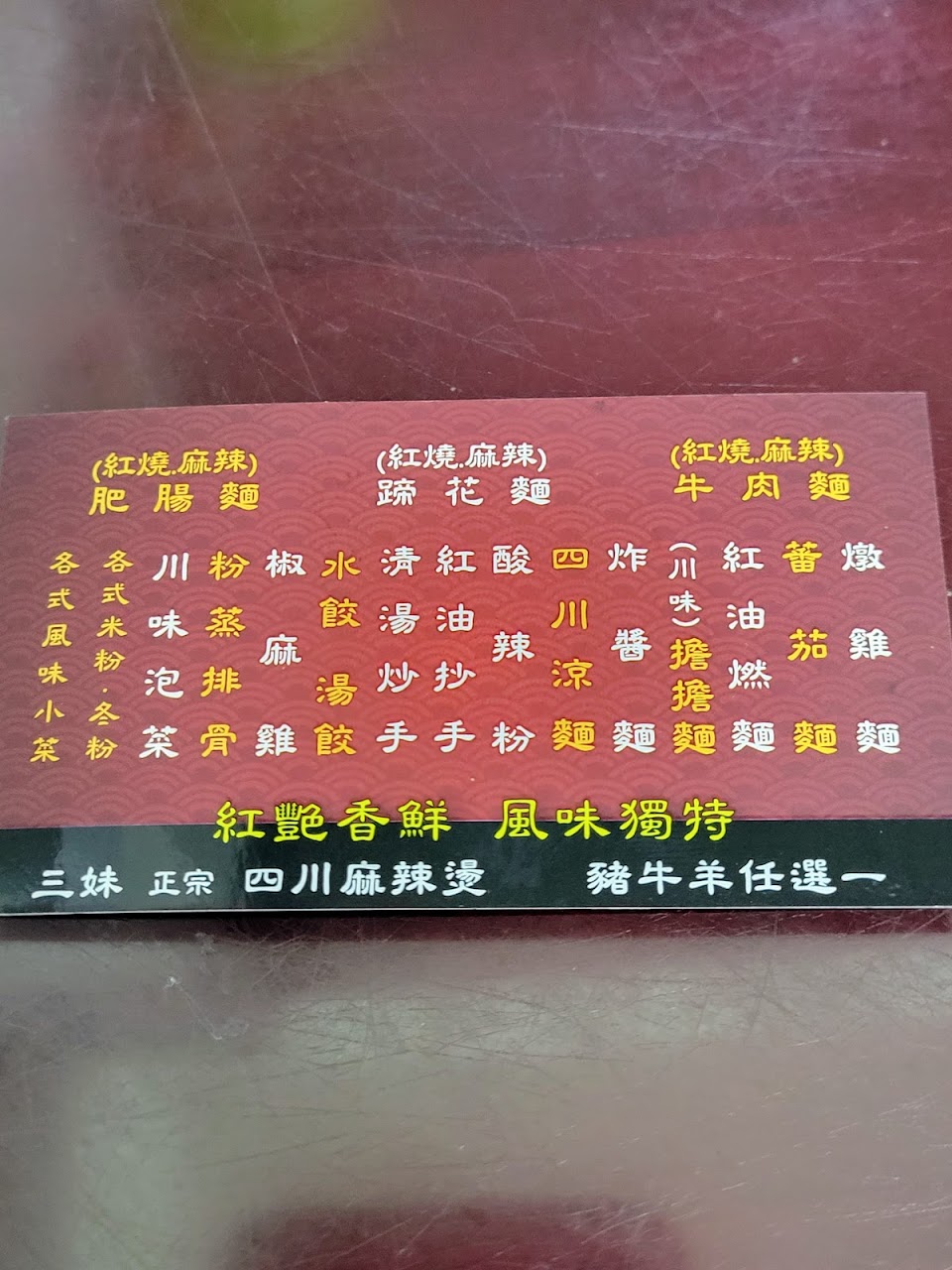 2024最新在地推薦餐廳的菜單_三妹四川麵食的菜單、圖片