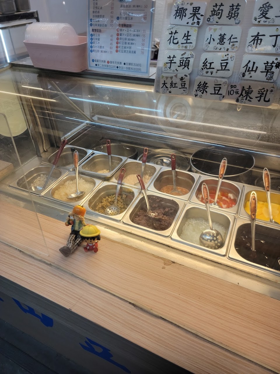 我點了珍珠、蜜芋頭、小薏仁和碗粿。
