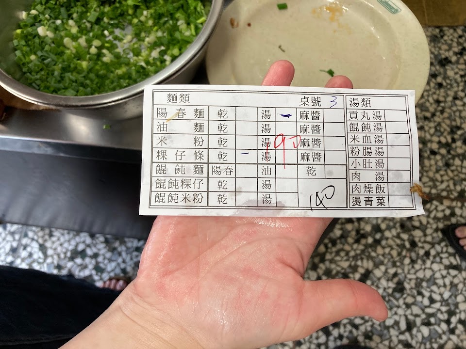 菜單上沒有價格,所以要拍價格的菜單,寫完菜單後,直接去夾滷味,把菜單放在滷味上排隊,接下來等餐點來就好!