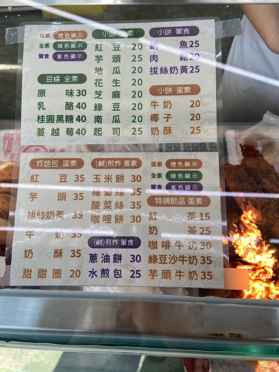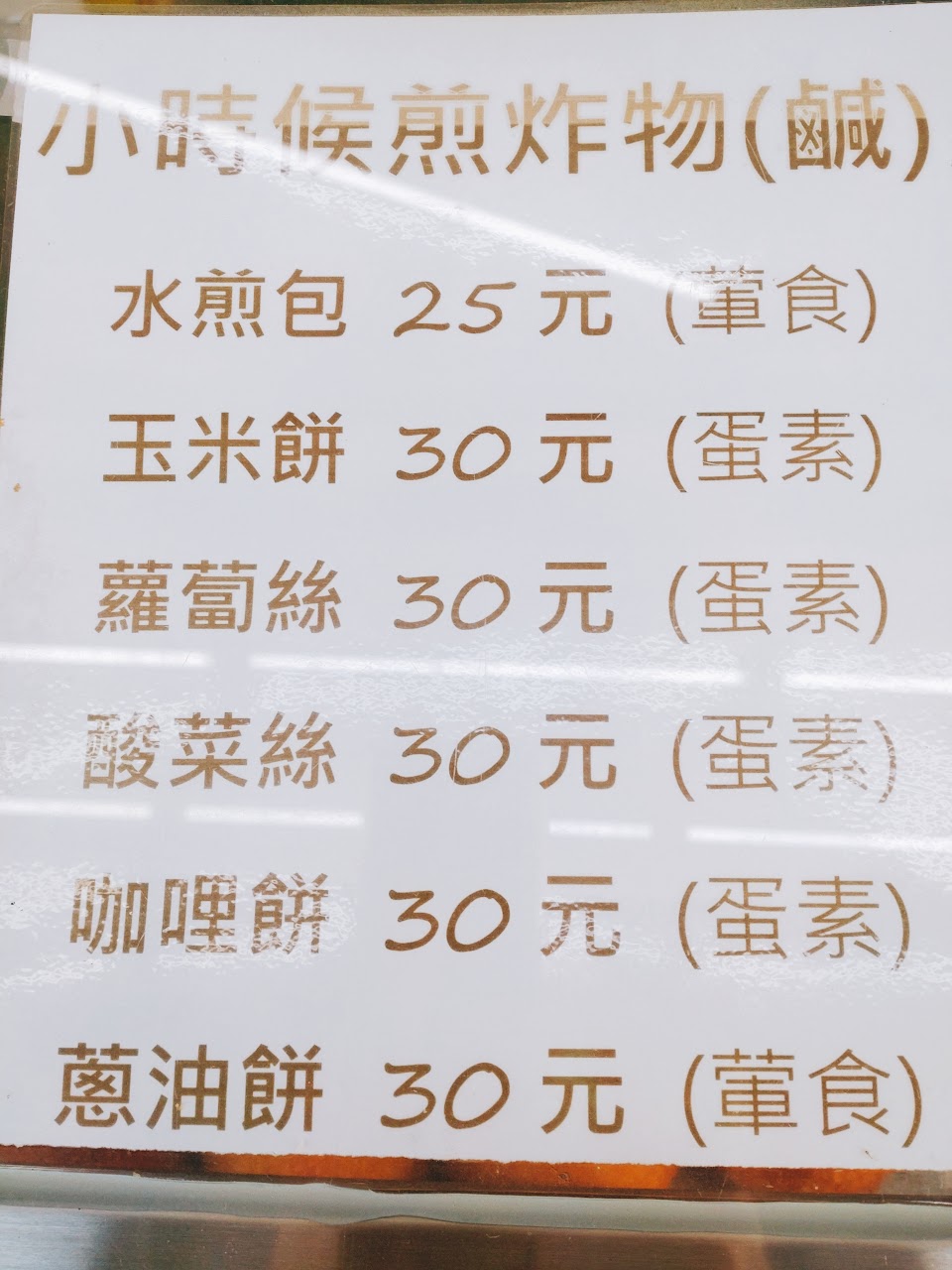 傳統風味老店,可停車在路邊,菜單種類豐富,價格非常親民,購買動線流程規劃順暢,排隊很快就會輪到了。小餅(紅豆20元)甜而不膩,一口咬下會湧現童年的回憶;水煎包(30元)胡椒味蓋過食材,不推;炸麵包(奶酥30元)外皮炸得酥脆,卻不感到油膩,但吃完後卡路里爆表!